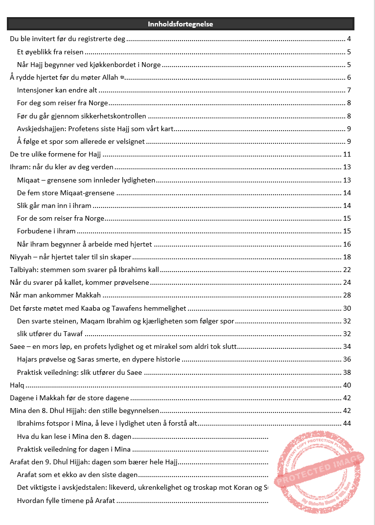 Dette er første utkast laget for de som reiser for Hajj. Denne boken har fokus på den spirituelle delen av reisen samt hvordan Hajj gjennomføres. Boken er i begrenset opplag. Vi anbefaler å kjøpe denne sammen med Umrah guiden for å få en fullkommen oversikt også over hvordan man gjennomfører Umrah. Begge kjøpes som en pakkepris til 399,-
